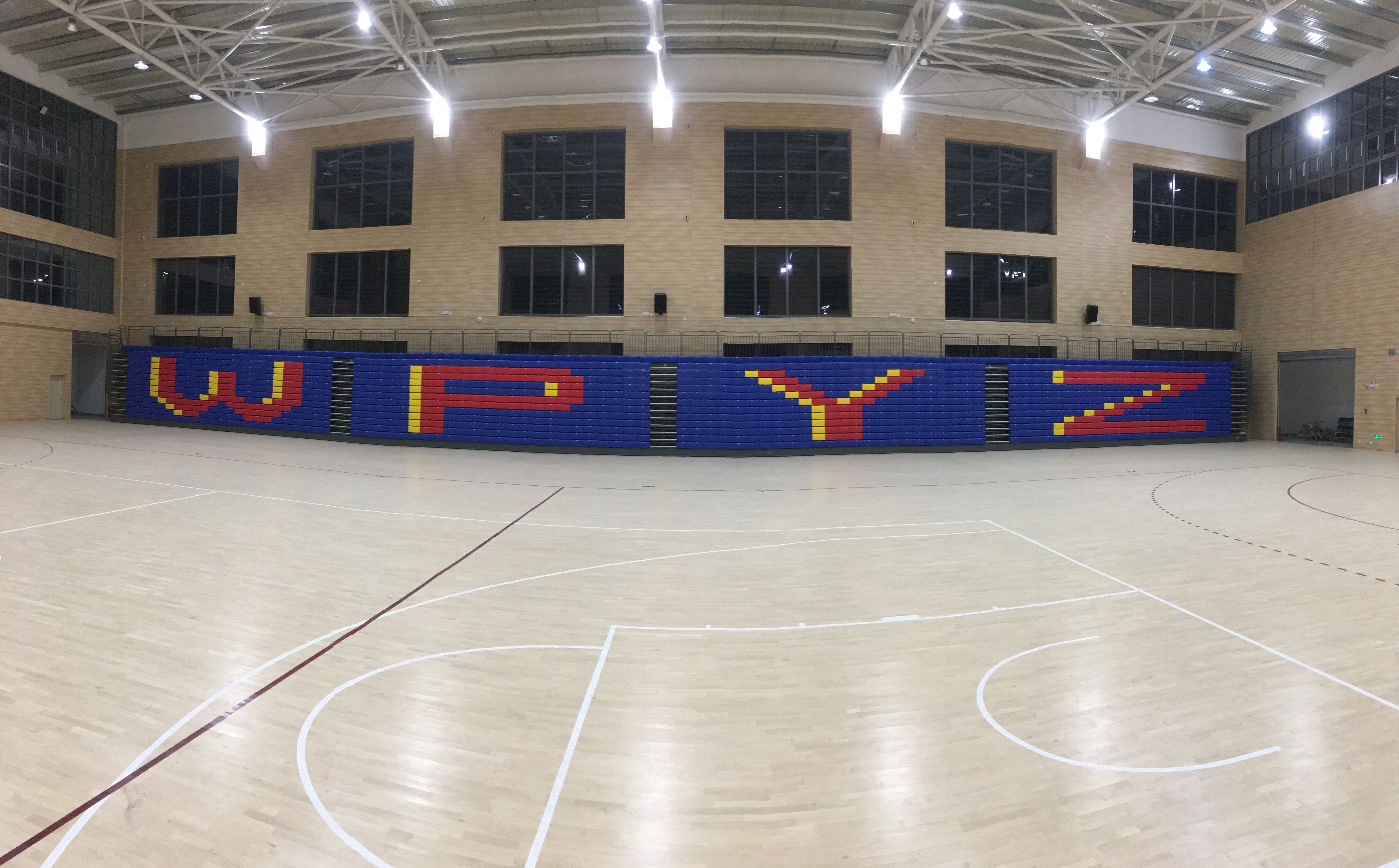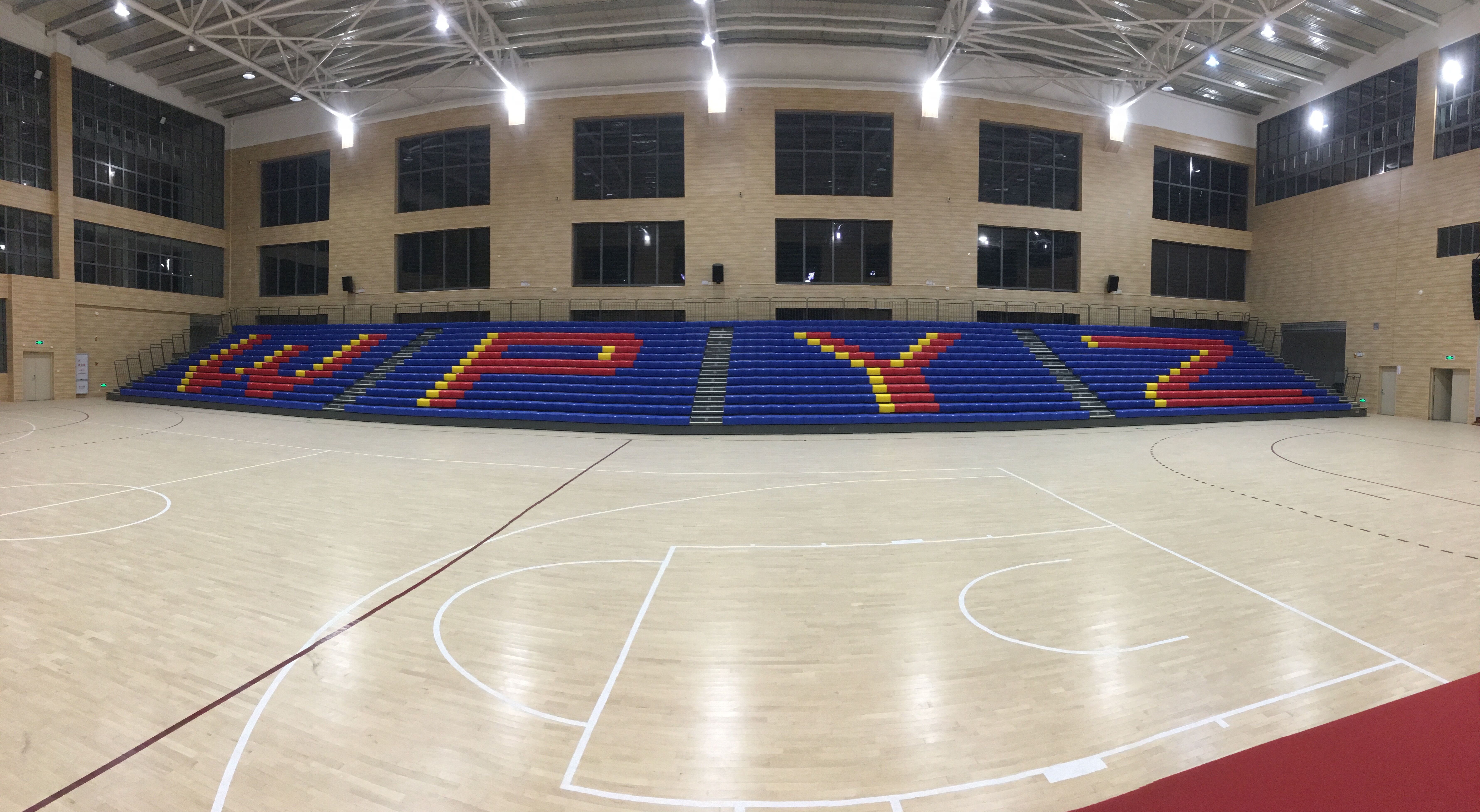 二層為手球活動中心兼籃球館、羽毛球館,排球館的多功能訓練比賽場地以及配套設施等。場館可以進行手球、籃球、羽毛球、排球等項目的訓練以及比賽還可以滿足學?;顒?、文藝表演、展覽等多功能的使用需求,場館內有設置1200座移動伸縮看臺,均由專業(yè)活動場館伸縮看臺座椅生產制造商-深圳優(yōu)藝體育設備有限公司提供,在運動模式時,活動看臺整體靠墻收回匣子形狀,將場地讓出,進行可以布置1個手球場、2個籃球場(4個排球場、8個羽毛球場),進行訓練和比賽使用。在會議模式時,活動看臺整體伸出,通過場地設計,最多可以容納千人會議,這時學校大會可在室內完美舉行。